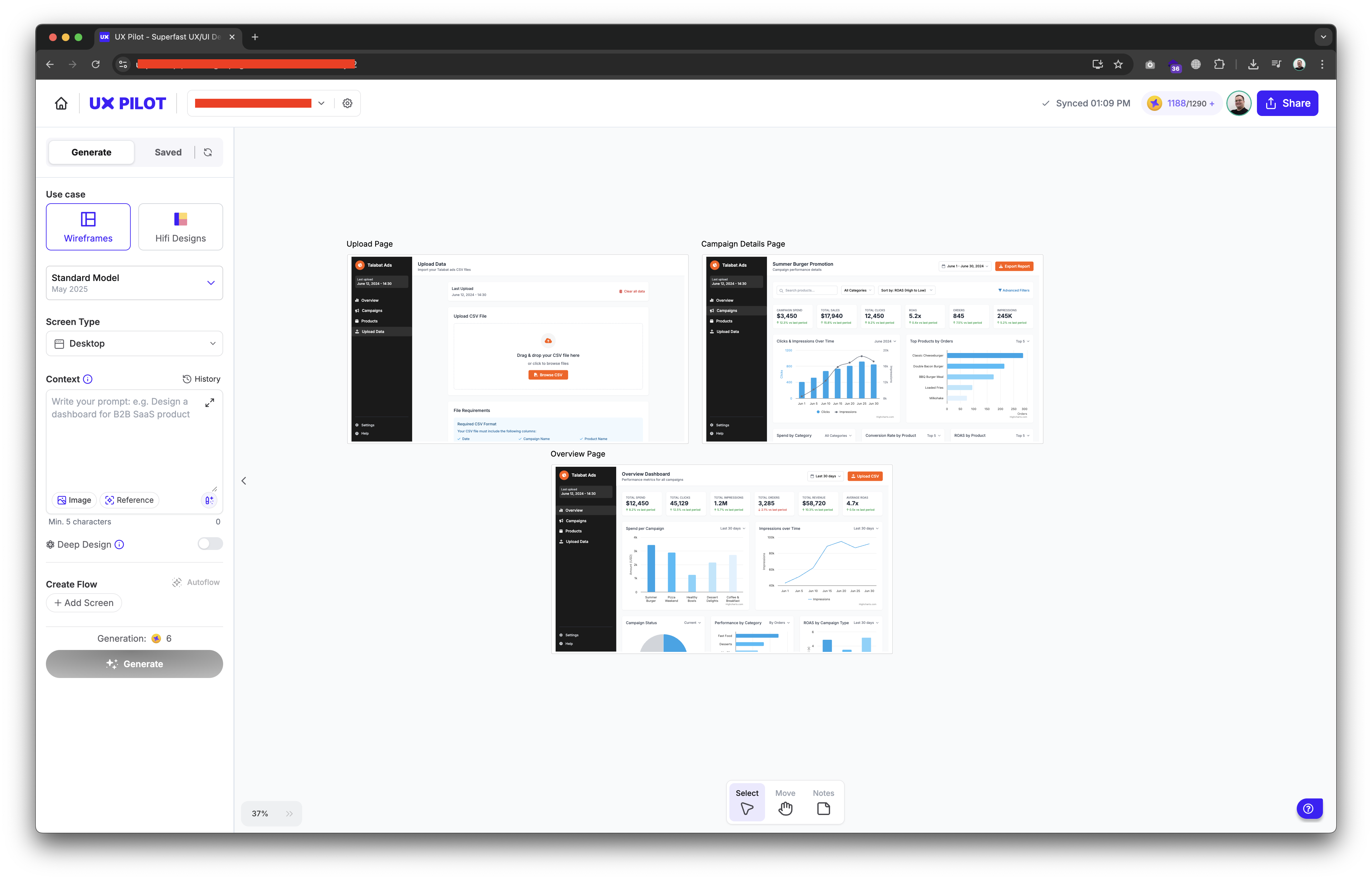 Here’s how I used UX Pilot to create a full dashboard UI for a project: